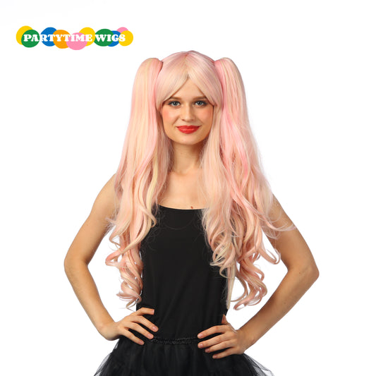 PARTYTIME LONG CURLY SYNTHETIC FIBER BLUE /PINK COLOR LADY WIGS