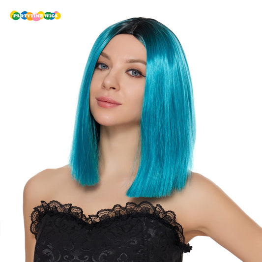 PARTYTIME 26 inch Purple and Black Midnight Siren Ombre Witch Women Adult Halloween Wig